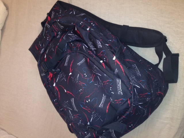 近所のスーパーで、チープなスパイダーマンのリュックを買いました。